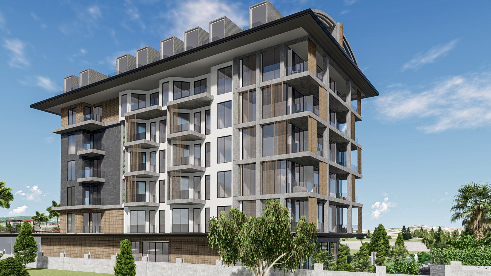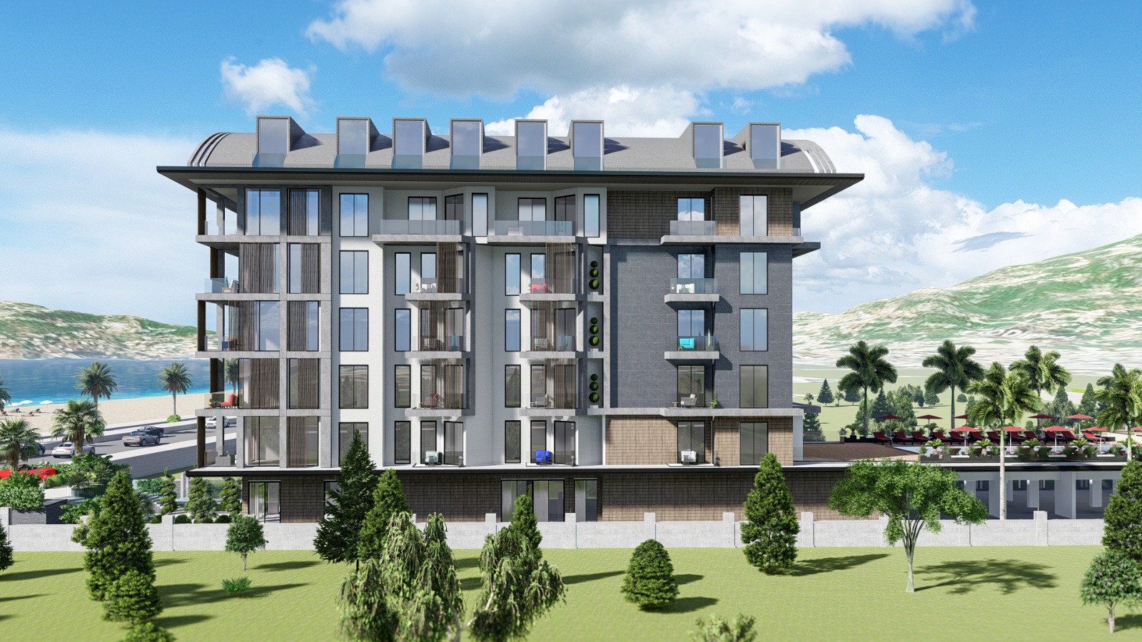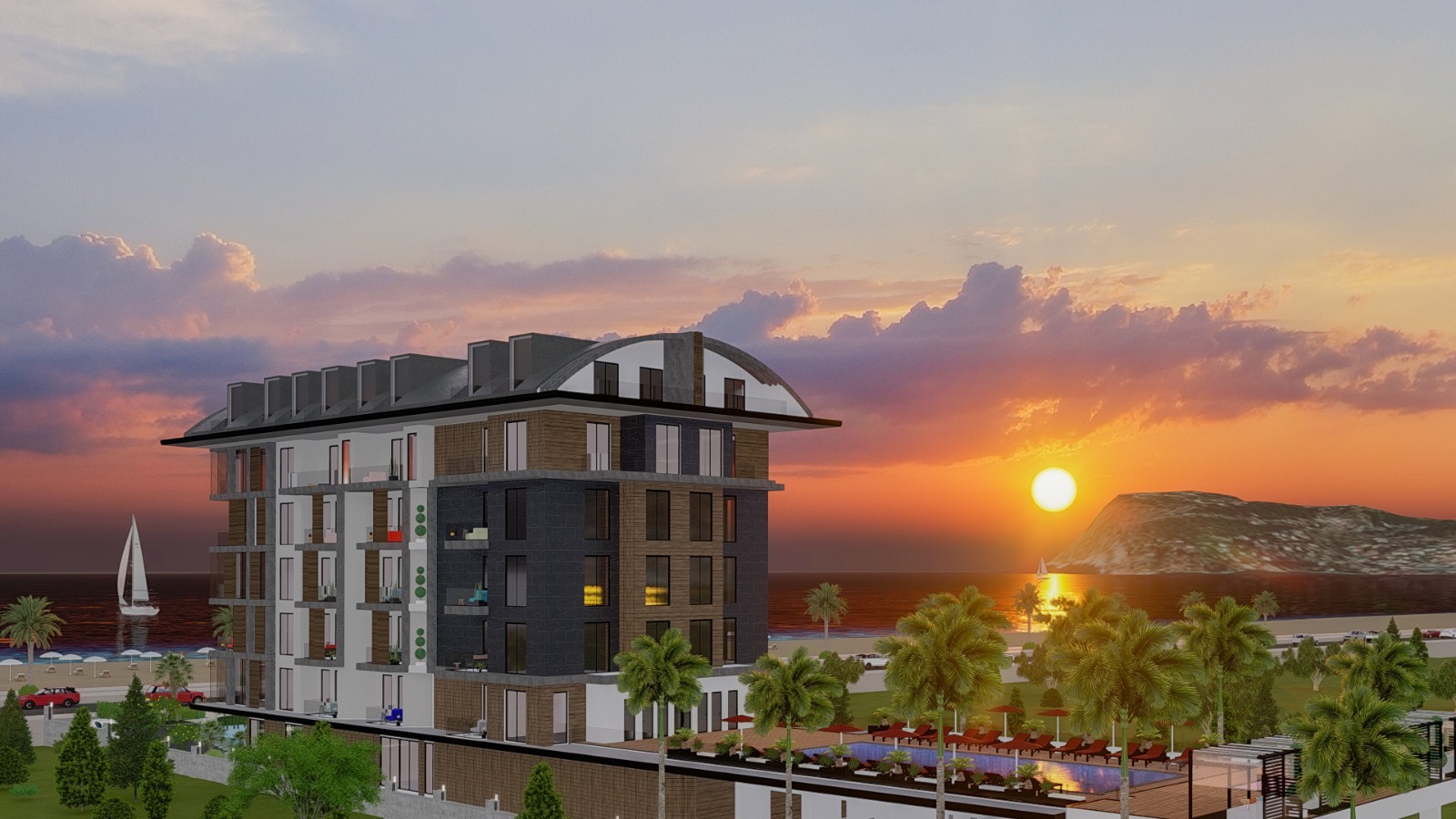 Новый проект будет расположен на первой береговой линии на земельном участке общей площадью 2 230 квадратных метров. Здесь будет построено одно 5-этажное здание, где на каждом этаже будет по 8 квартир. В доме представлены апартаменты различных планировок: 1+1 площадью 47-61 квадратных метр, 2+1 площадью 69-74 квадратных метров по цене от 129000, пентхаусы 2+1 по цене от 279000 и 4+1 по цене от 369000.