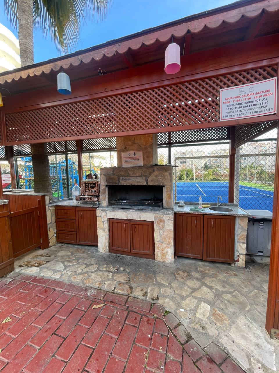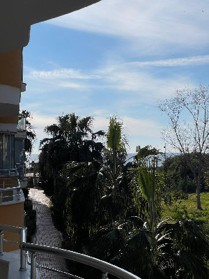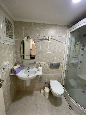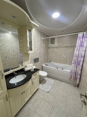 Комплекс расположен на первой береговой линии. Пляж и комплекс разделяет дорога, имеется переход. Квартира находится во втором доме от моря на 2 этаже. С балкона открываются приятные виды на горы, море и сам район. Апартаменты оборудованы необходимой мебелью и бытовой техникой для комфортного отдыха.