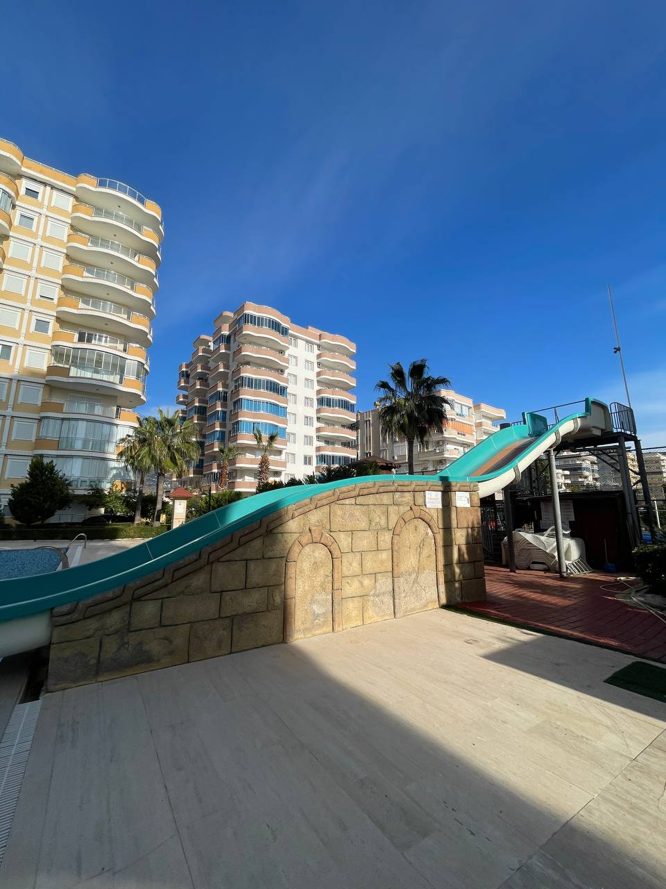 Сдается в аренду просторная квартира планировки 2+1 в жилом комплексе на первой береговой линии в популярном районе Махмутлар.