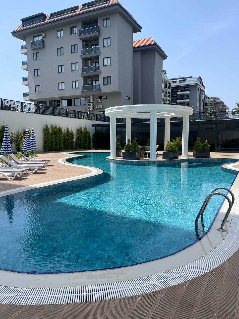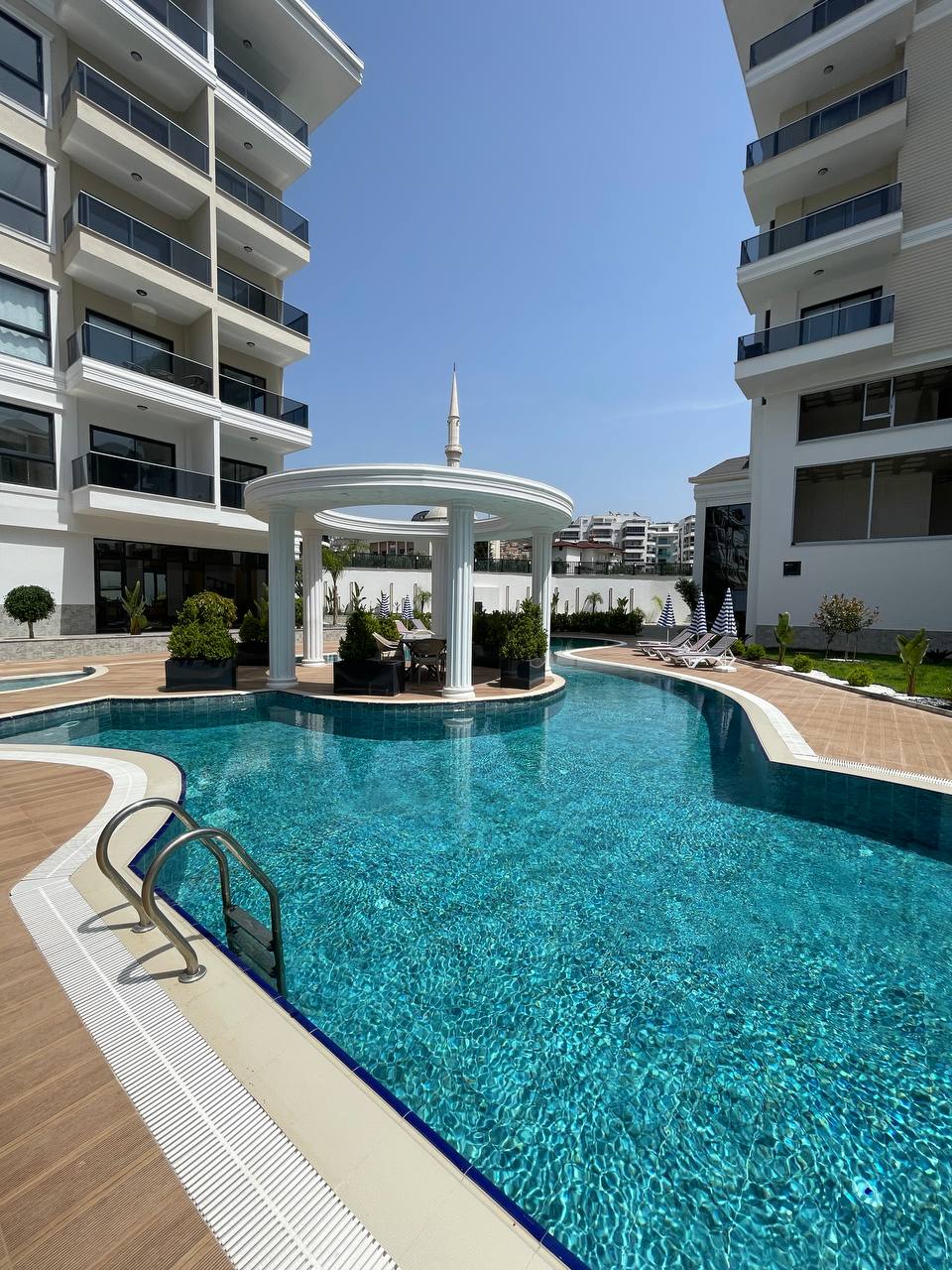 Комплекс имеет собственную закрытую территорию, где расположен открытый бассейн с зоной отдыха и шезлонгами, детская игровая площадка, спортивный зал и генератор на случай отключения электричества. Сауна и Хамам, а так же крытый бассейн.